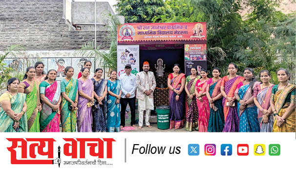 जळगाव (प्रतिनिधी) : श्री संत ज्ञानेश्वर प्राथमिक व माध्यमिक विद्यालय मध्ये गणेश चतुर्थी सारख्या सणांमध्ये स्वच्छता आणि पर्यावरणपूरक पद्धतींचे महत्त्व यावर विद्यार्थ्यांचे लक्ष केंद्रित करण्यासाठी स्वच्छता म्हणजे रोजचा सण …नाहीतर कायमचे आजारपण ; असा पर्यावरणपुरक गणेशोत्सवातुन लाखमोलाचा सामाजीक संदेश देण्यात आला. शाळेतील चिमुकल्या विद्यार्थी विद्यार्थिनीच्या हस्ते श्री गणेशाची स्थापना करण्यात आली.