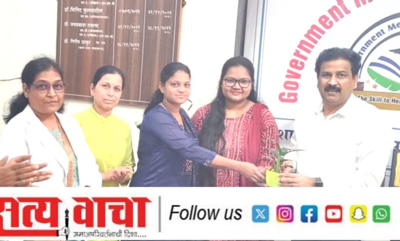 जळगाव (प्रतिनिधी) : येथील शासकीय वैद्यकीय महाविद्यालय व रुग्णालयातील स्त्रीरोग व प्रसूतीशास्त्र विभागात सोमवारी दि. २९ रोजी स्पार्कींग होऊन शॉर्टसर्किटमुळे आग लागली होती. मात्र प्रसंगावधान राखून तेथील अधिपरिचारिकानी तात्काळ अग्निशामक यंत्र (fire extinguisher) वापरून तात्काळ आग विझविल्याबद्दल अधिष्ठाता डॉ. गिरीश ठाकूर यांनी तात्काळ दखल घेत दोघंही अधिपरिचारिकांचा दालनात बोलावून सन्मान केला.