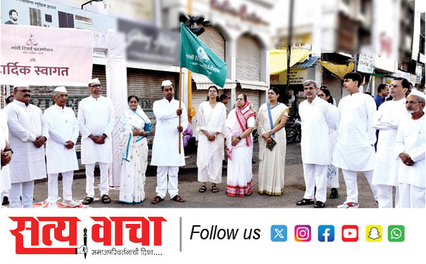 गांधी रिसर्च फाउंडेशनतर्फे गुरुवारी विश्व अहिंसा दिवस, चरखा जयंती, राष्ट्रपिता महात्मा गांधी व लालबहादूर शास्त्री यांच्या जयंतीनिमित्त अंहिसा सद्भावना शांती रॅलीचे आयोजन केले होते. यावेळी व्यासपीठावर खासदार स्मिता वाघ, आमदार सुरेश भोळे, जिल्हा परिषदेच्या मुख्य कार्यकारी अधिकारी मिनल करनवाल, कवयित्री बहिणाबाई चौधरी विद्यापीठाचे कुलगुरू डॉ. व्हि. एल. माहेश्वरी, मनपा आयुक्त ज्ञानेश्वर ढेरे, राजेंद्र मयूर, डॉ.सुदर्शन अयंगार, जैन इरिगेशनचे अध्यक्ष अशोक जैन , उपाध्यक्ष अनिल जैन, ज्योती जैन, गीता धर्मपाल, अंबिका जैन या मान्यवरांची उपस्थिती होती. त्याप्रमाणे या रॅलीत अतुल जैन, डॉ. भावना जैन, जैन परिवारातील सदस्य, अनिश शहा, शिरीष बर्वे यांच्यासह जैन इरिगेशन सिस्टम्स लि., गांधी रिसर्च फाऊंडेशन गांधी तीर्थचे सहकारी, अनुभूती निवासी आणि इंग्लीश मीडियम स्कूलचे विद्यार्थी तसेच शहरातील इतर शाळांचे विद्यार्थी व नागरिक उपस्थित होते.