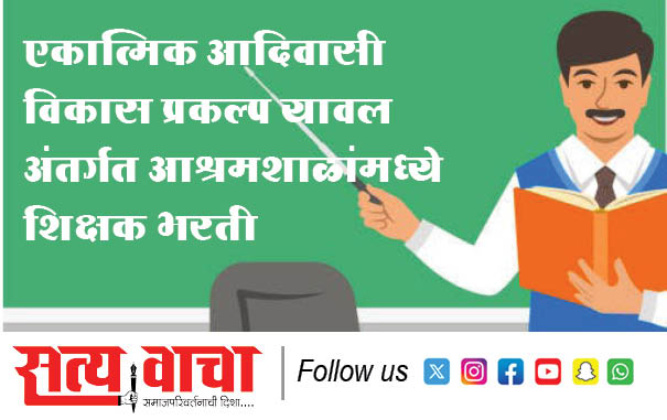 एकात्मिक आदिवासी विकास प्रकल्प यावल अंतर्गत आश्रमशाळांमध्ये शिक्षक भरती