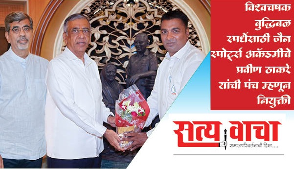 विश्वचषक बुद्धिबळ स्पर्धेसाठी साठी जैन स्पोर्ट्स अकॅडमीचे प्रवीण ठाकरे यांची पंच म्हणून नियुक्ती