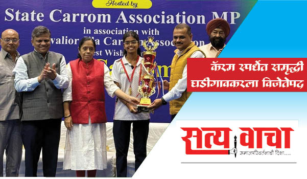 जळगाव (प्रतिनिधी) : ग्वाल्हेर येथे १ ते ४ नोव्हेंबरदरम्यान झालेल्या ज्युनिअर राष्ट्रीय अजिंक्यपद कॅरम स्पर्धेत युवा मुलींच्या एकेरी गटात जैन इरिगेशच्या समृद्धी घडीगावकरने अंतिम सामन्यात महाराष्ट्राच्या केशर निर्गुण हिचा २–० सेट ने पराभव करून आपल्या लागोपाठ दुसऱ्या राष्ट्रीय विजेतेपदास गवसणी घातली.
