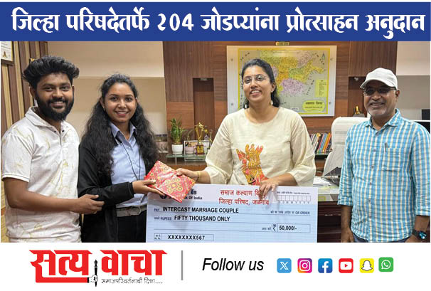 जळगाव जिल्हा परिषदेतर्फे २०४ जोडप्यांना प्रोत्साहन अनुदान