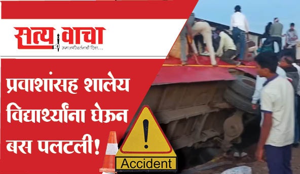 पाचोरा (प्रतिनिधी) : प्रवाशांसह शालेय विद्यार्थ्यांना घेऊन जाणारी एसटी बस पलटली झाल्याची घटना सोमवारी सायंकाळी घडली. या अपघातात सुदैवाने जीवीतहानी झालेली नसून चालक जखमी झाले आहे. आहे. हा अपघात मोंढाळे ते निंभोरी गावांच्या दरम्यान झाला असून ट्रॅक्टरने कट मारल्याने बस चालकाचे नियंत्रण सुटले आणि बस रस्त्याच्या कडेला असलेल्या खोल खड्ड्यात घसरली. यावेळी स्थानिक ग्रामस्थांसह तरुणांनी अडकलेल्या प्रवाशांना आणि विद्यार्थ्यांना सुखरूप बाहेर काढले.
