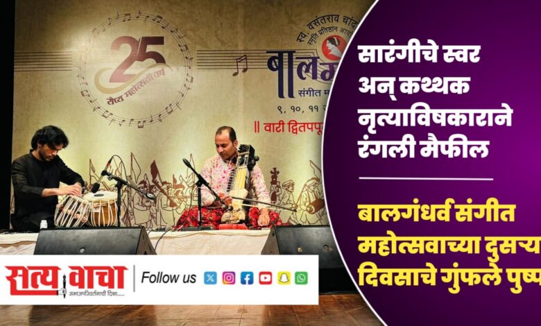 जळगाव (प्रतिनिधी) : सारंगीच्या स्वरांना भावनांचे स्वरूप दर्शन घडवत उस्ताद साबीर खान यांनी सादर केलेला आविष्कार आणि निधी प्रभू व कुणाल ओम यांची कथक – फ्लेमेंको जुगलबंदीचे सादरीकरण हे बालगंधर्व संगीत महोत्सवाच्या दुसऱ्या दिवसाचे वैशिष्ट्य ठरले.