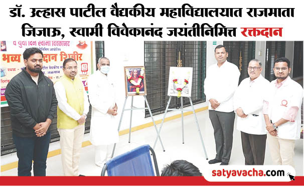 डॉ. उल्हास पाटील वैद्यकीय महाविद्यालयात राजमाता जिजाऊ, स्वामी विवेकानंद जयंतीनिमित्त रक्तदान