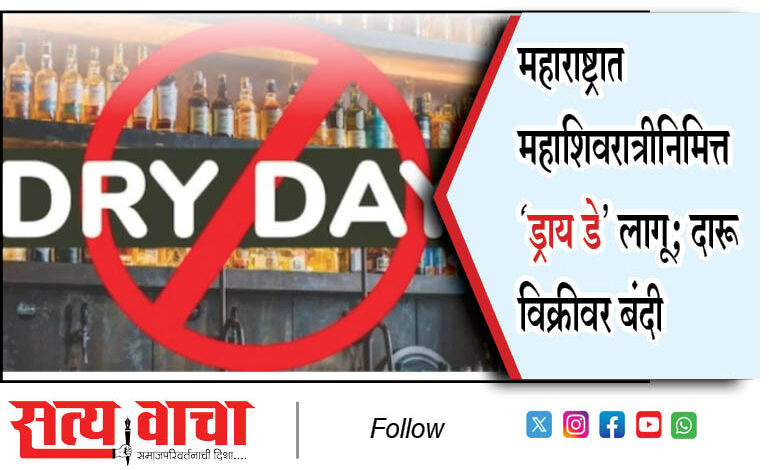 जळगाव (प्रतिनिधी): महाराष्ट्र सरकारने राज्यभर महाशिवरात्रीसारख्या धार्मिक आणि सांस्कृतिक महत्त्वाच्या दिवसांनिमित्त ‘ड्राय डे’ लागू केले आहे. या दिवशी दारूची विक्री, बार्स, पब्स आणि हॉटेल्समध्ये मद्य परोसणे पूर्णपणे बंद राहणार आहे. प्रशासनाने नियमांचे उल्लंघन करणाऱ्यांविरोधात कठोर कारवाई करण्याचे आदेश दिले आहेत. या निर्णयामागे सार्वजनिक सुरक्षितता राखणे, गर्दी नियंत्रणात ठेवणे आणि धार्मिक कार्यक्रम शांतपणे पार पडणे यांसारखी कारणे आहेत.