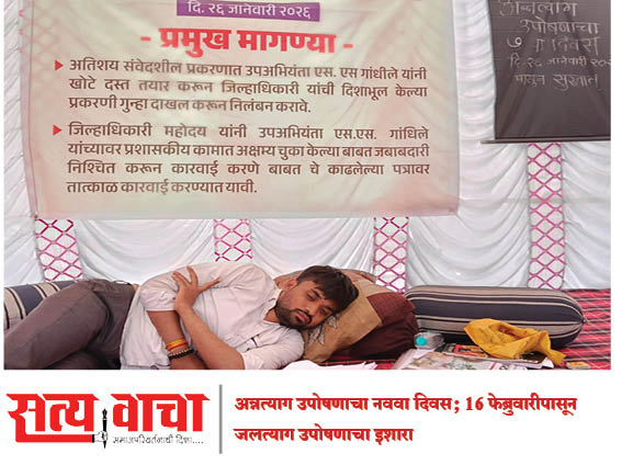 अन्नत्याग उपोषणाचा नववा दिवस; १६ फेब्रुवारीपासून जलत्याग उपोषणाचा इशारा
