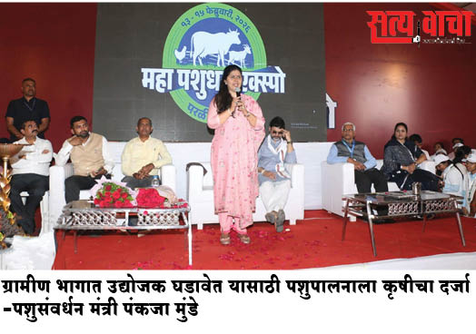 परळी येथील अंबाजोगाई मार्गालगत असलेल्या ओपळे मैदानावर आयोजित महा पशुधन एक्स्पो 2026 च्या उद्घाटनप्रसंगी त्या बोलत होत्या. हे भव्य पशुपक्षी प्रदर्शन 38 एकर क्षेत्रात भरविण्यात आले असून, ते 15 फेब्रुवारीपर्यंत तीन दिवस चालणार आहे.