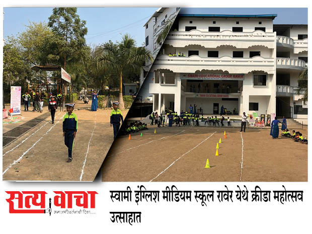 रावेर (प्रतिनिधी): स्वामी इंग्लिश मीडियम स्कूल रावेर येथे आज वार्षिक स्पोर्ट डे (क्रीडा महोत्सव) मोठ्या उत्साहात आणि आनंदी वातावरणात संपन्न झाला. या कार्यक्रमाला संस्थेचे संचालक पुष्पक पवार यांची विशेष उपस्थिती लाभली. तसेच प्राचार्य रातिष मोन आणि उपमुख्याध्यापिका अनिता पाटील कार्यक्रमाला उपस्थित होते.