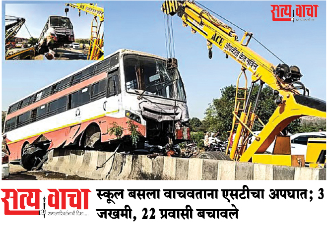 स्कूल बसला वाचवताना एसटीचा अपघात; ३ जखमी, २२ प्रवासी बचावले