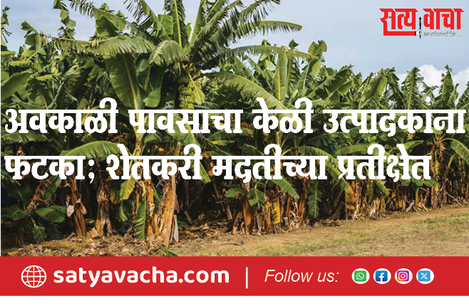 मिळालेल्या माहितीनुसार, पावसासोबत आलेल्या वाऱ्यामुळे केळीची झाडे वाकणे, फळांचे नुकसान होणे अशा घटना घडल्या आहेत. यामुळे आधीच वाढत्या खर्चामुळे अडचणीत असलेल्या शेतकऱ्यांचे आर्थिक गणित कोलमडले आहे.