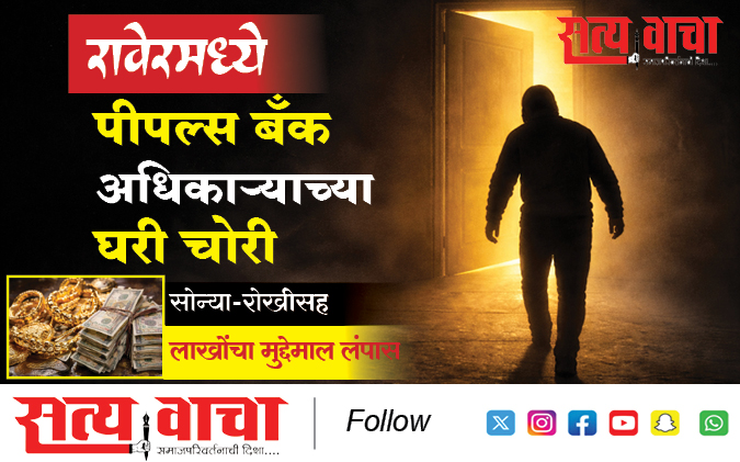 रावेरमध्ये पीपल्स बँक अधिकाऱ्याच्या घरी चोरी; सोन्या-रोखीसह लाखोंचा मुद्देमाल लंपास