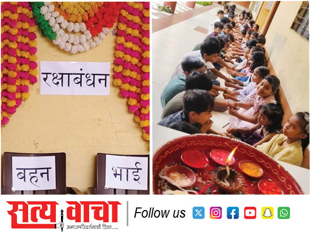 विद्यार्थ्यांनी विद्यार्थ्यांच्या हातात राख्या बांधल्या आणि त्यांच्या उज्वल भविष्यासाठी प्रार्थना केली. विद्यार्थ्यांनी रक्षाबंधन बहिण भावा विषयी भाषणात दिली. राखी ही केवळ धागा नसून ती आपुलकी सुरक्षा आणि विश्वास याचे प्रतीक आहे. संपूर्ण कार्यक्रम शिस्तबद्ध आणि आनंददायी पद्धतीने पार पडला