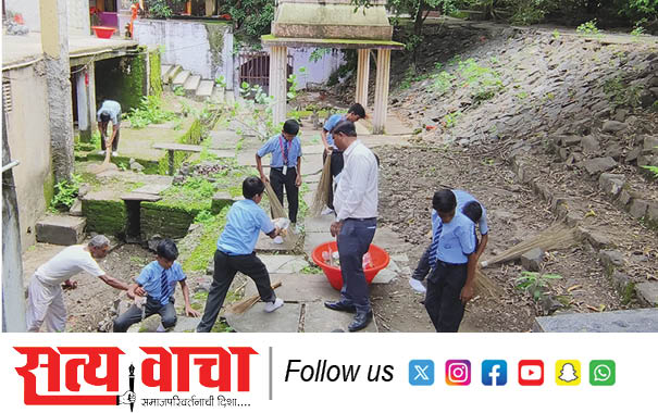 ‘स्वच्छ भारताकडे एक पाऊल’; विद्यार्थ्यांनी शिवमंदिर परिसर केला स्वच्छ