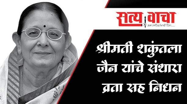 श्रीमती शकुंतलाबाई या जळगाव येथील रायसोनी परिवाराच्या कन्या होत्या. गेल्या काही दिवसांपासून त्या आजारी असल्याने उपचारासाठी इस्पितळात दाखल करण्यात आले असता त्यांनी संथारा समाधीमरण व्रत स्वीकारले होते. त्यांच्या इच्छेनुसार त्यांचे नेत्रदान करण्यात. त्यांच्या संथारा व्रतासह निधनाने जैन परिवारासह, आप्तेष्ट, नातेवाईक व विस्तारित परिवारात शोककळा पसरली आहे.