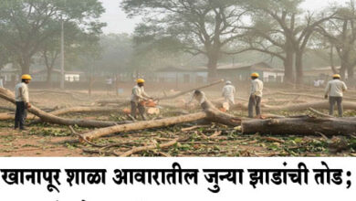 खानापूर शाळा आवारातील जुन्या झाडांची तोड; ग्रामस्थांमध्ये नाराजी